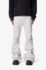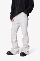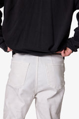 The Super Stacked Denim features a bootcut fit designed for a fitted thigh and a long rise. Constructed from 100% cotton, this denim includes a super long inseam and a wide leg opening for maximum stacking and flare effect. The light dirt wash provides a worn look, enhancing the overall aesthetic.