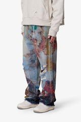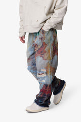 Constructed from 100% cotton denim with a stone wash finish, the Ultra Baggy Angel Denim features an oversized silhouette with an all-over printed graphic of angels and cherubs. Designed with light distressed blowouts and a released hem for a worn-in appearance. Finished with standard 5-pocket styling, belt loops, and a button fly.
