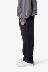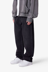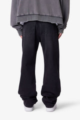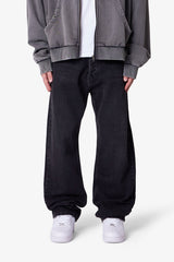 The Ultra Baggy Denim is constructed from 100% cotton denim with a black stone wash finish. Designed with an ultra baggy silhouette and light sanding throughout, this five-pocket jean includes a button fly and standard belt loops.