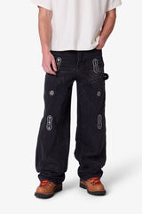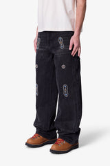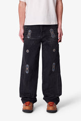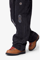 Part of our Heritage Collection, the V734 Western Jewel Denim is constructed from 100% cotton denim in a medium blue wash. Designed with a baggy fit, it features jewel and leather patch applique, a studded applique patch, and double knee construction. Functional workwear details include a hammer loop and work pocket.