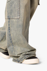 the Void Baggy Cargo Denim is a bold addition to our collection. Featuring our latest Void fit with extra room in the waist, hip, and leg opening, along with an extended inseam from our Rave Fit. Constructed from vintage washed cotton denim, embracing traditional 5 pocket denim details, and completing with oversized cargo pockets at the outseam.