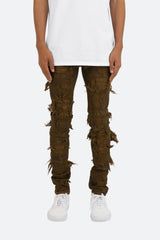the X289 Stretch Denim is designed with our X fit which is skinny throughout, an extended inseam for stacking, and features a tinted brown wash and finished with distressing and repairs with self-fabric throughout.