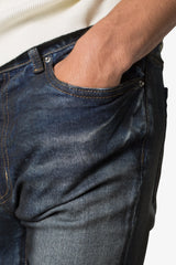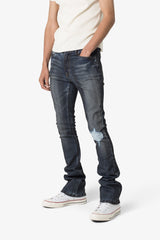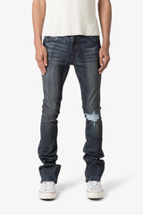 the X385 Skinny Stacked Denim is designed with our new X fit which is skinny throughout with an extended inseam for stacking and a flare at the leg opening, constructed from stretch denim, distressing detail at the knee, and finished with a light garment wash for improved hand feel.