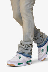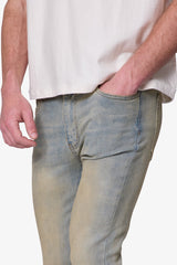 the X514 Skinny Stacked Denim is designed with our new X fit which is skinny throughout with an extended inseam for stacking and a flare at the leg opening, constructed from stretch denim, and finished with a vintage wash for improved hand feel.