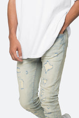 the X565 Skinny Denim is designed with our new X fit which is skinny throughout with an extended inseam for stacking, and features a vintage blue wash and custom distressing details throughout.