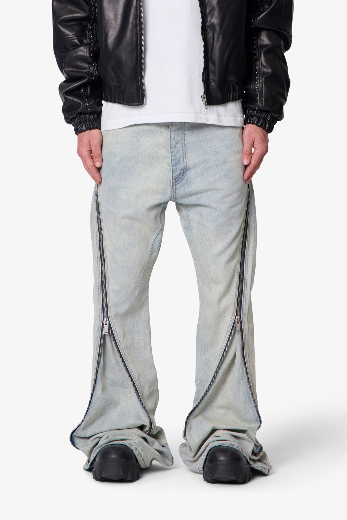 - Wide leg opening for max stacking and flare