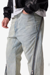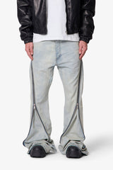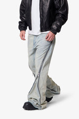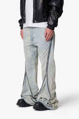 The Zipper Extra Flare Denim offers a modern twist on classic bootcut denim. Featuring a relaxed fit through the thigh and knee, this style showcases a super long inseam and wide leg opening for maximum stacking and flare effect. A functional zipper extends from the back top hip to the front leg opening, allowing for customizable flare at the bottom of the leg. This denim is crafted from 100% cotton for comfort and durability.
