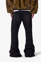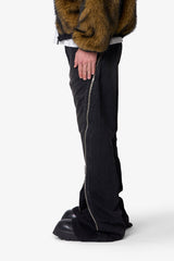 The Zipper Extra Flare Denim features a relaxed bootcut fit with a super long inseam and wide leg opening. Designed with relaxed thigh and knee, this denim allows for maximum stacking and a pronounced flare effect. A functional zipper runs from the back top hip to the front leg opening, enabling an adjustable flare at the bottom leg.