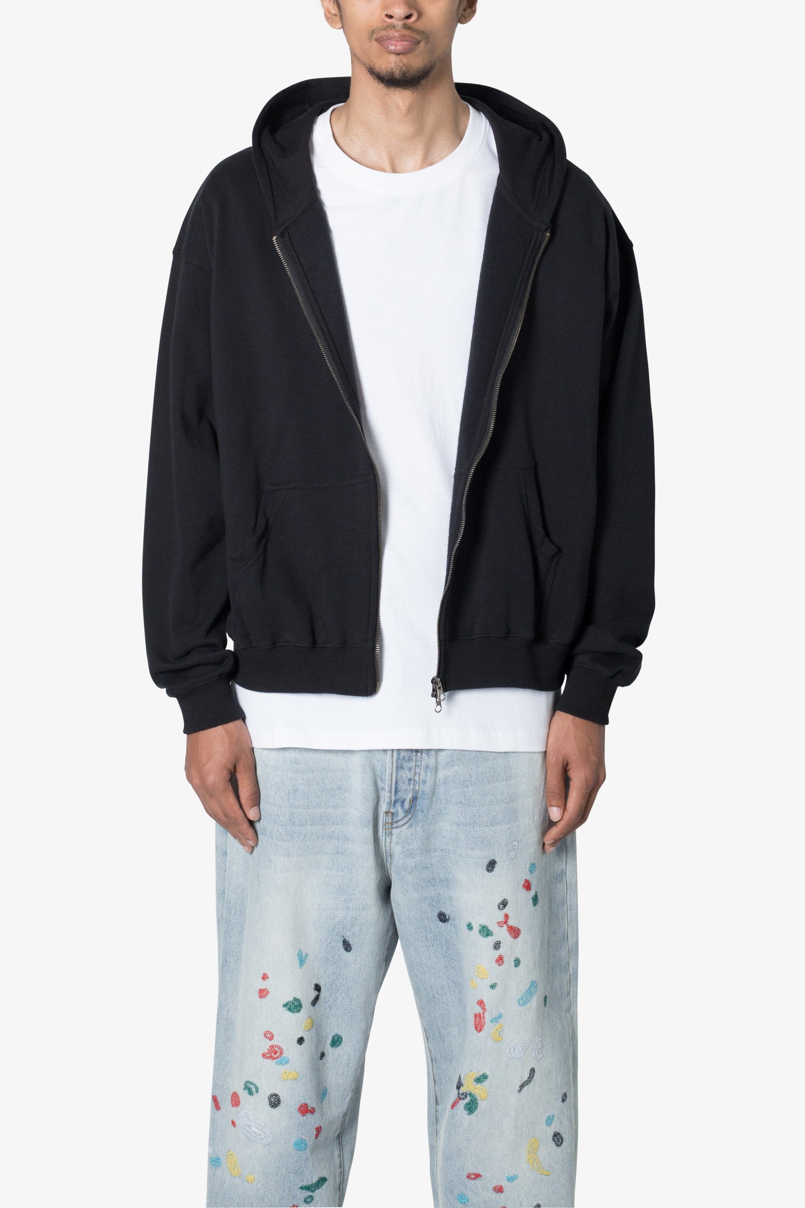 Basic Zip Up Hoodie - Black