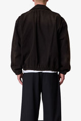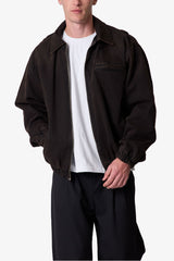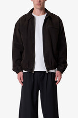Constructed from 100% cotton denim with a heavy vintage wash and pp spray, the Collared Cinch Jacket features a relaxed fit with dropped shoulders and a gathered hem. The style is finished with a chest welt pocket, full front zip closure, elasticated sleeve cuffs, and a flannel lining.
