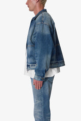 the Denim Chore Coat is designed with a standard fit and features a classic cut and featuring a zipper placket and paneling on the front. The blue denim base undergoes a vintage wash, that’s both visually striking and pleasing to the touch.