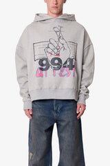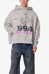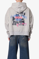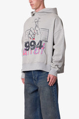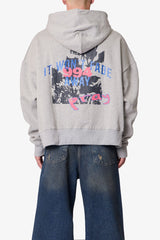 Constructed from vintage-washed 360 gsm cotton fleece, the Fade Away Printed Hoodie features a relaxed pullover silhouette with drop shoulders and melange fabric. Designed with a large front graphic and glitter-ink back print, the garment is finished with a kangaroo pocket, ribbed cuffs, and bottom hem.