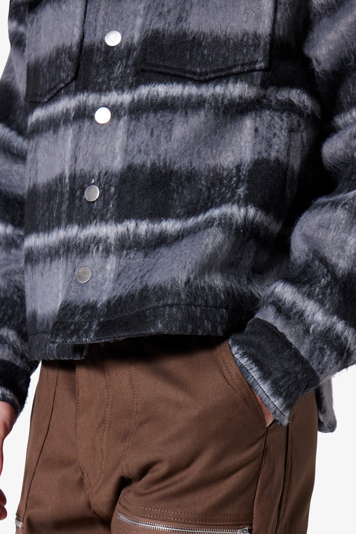 the Brushed Flannel Jacket is designed in a classic fit from a brushed multi-color plaid fabric, patch pockets on the front, button placket, and finished with welt pockets at the side seam.