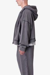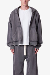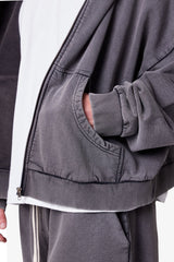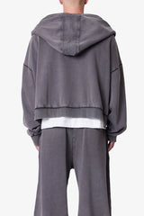 Constructed from 100% cotton fleece with a vintage wash, the Full Zip Hoodie features a wide, cropped fit and a relaxed silhouette. Designed with a T8 metal zipper that extends through the hood, it's finished with kangaroo front pockets, ribbed sleeve cuffs, and a ribbed bottom opening.