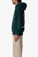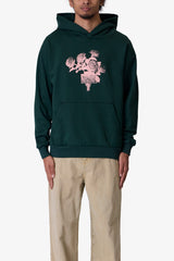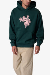 the Gift Hoodie features a standard fit, a front pouch pocket, and body matched ribbing at the waist, side seam, and wrists, finished with a multi color print on the chest and back.