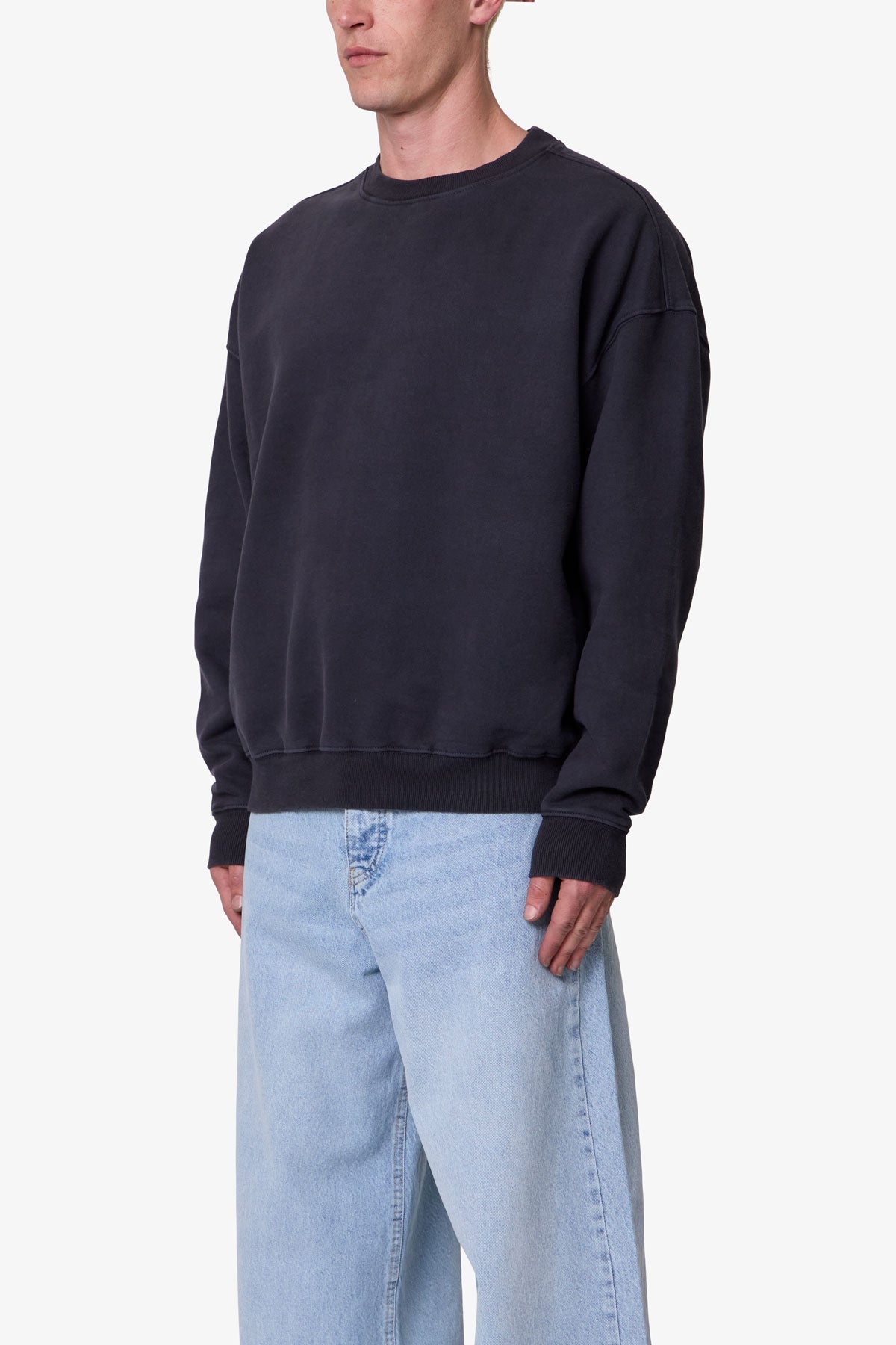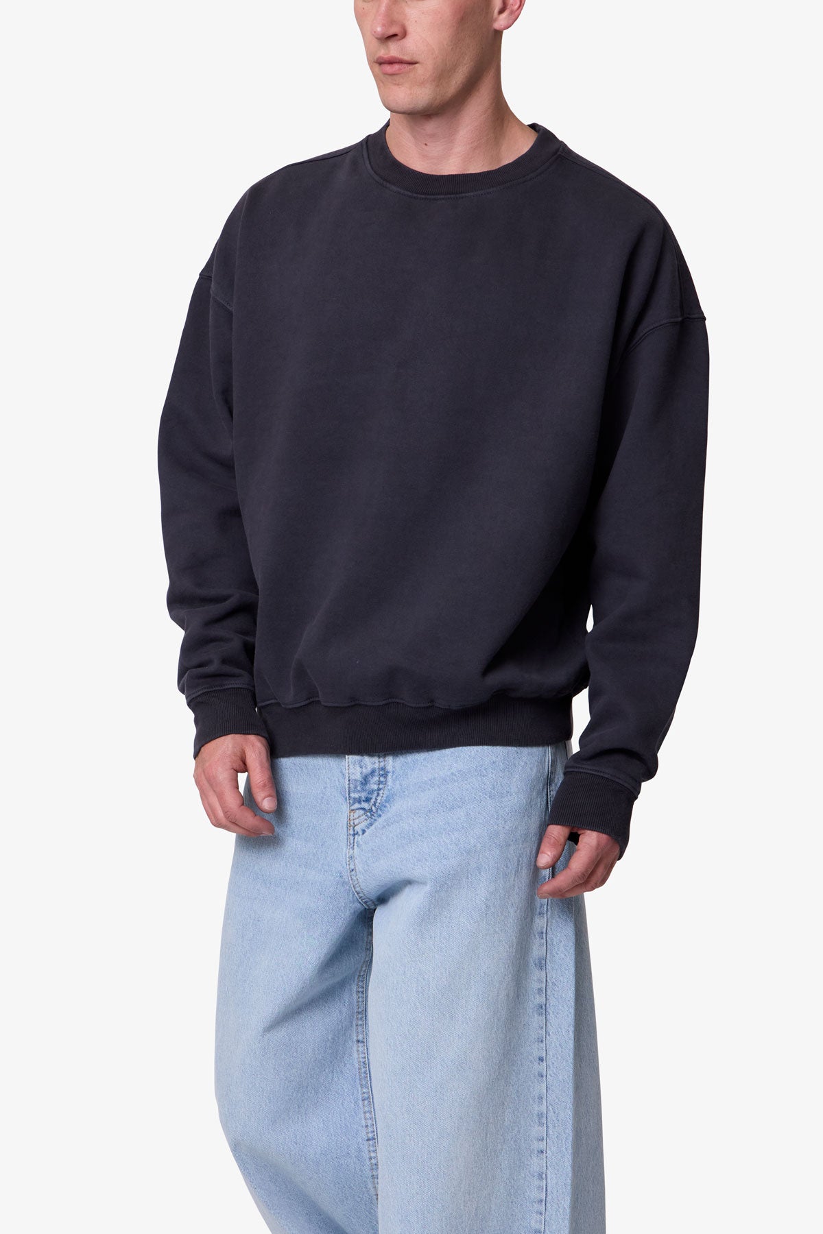 The Heavy Basic Crewneck Sweater is built with weight and finished with a subtle worn-in character for added depth. Crafted from 450 GSM cotton fleece, it has a dense structure with a soft interior, while the vintage wash creates a naturally faded look. Designed to hold its form while evolving with wear. A long-term essential with understated edge.