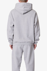 Constructed from 450 gsm cotton fleece with a garment wash, the Heavy Basic Hoodie features a relaxed silhouette with dropped shoulders and a kangaroo pocket. Designed with cover stitch detailing, a ribbed hem, and a self-lined hood.