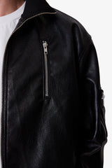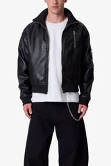 Constructed from a durable faux leather blend, the Leather Pilot Jacket features a standard fit with a classic pilot silhouette. Designed with a high ribbed neck and multiple zip and welt pockets, it includes a front zip closure and ribbed cuffs for a secure fit.