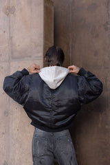 Constructed from 100% polyester nylon, the LWH Hooded Bomber Jacket features a wide, cropped fit with a cotton fleece hood. Designed with inset sleeve detailing, it includes a heavy-duty rib at the cuffs and bottom hem. The front closes with an antique silver zipper and is finished with two welt hand pockets.