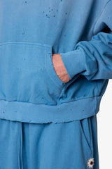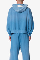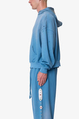 Constructed from heavyweight 450 gsm cotton French terry with a vintage wash and PP spray, the Mojave Hoodie features a relaxed fit and a heavily distressed finish. Designed with a pullover silhouette, it includes a kangaroo pocket, ribbed cuffs and hem, and is detailed with a faux leather patch and stud appliqué around the hood.