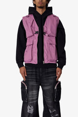 the Nylon Utility Vest is ideal for layering over a hoodie or other top. This vest features an open placket, zipper closure pockets on the chest, cargo pockets on the front, webbing detail at the back, and is constructed from synthetic fabric.