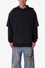 the Over Tee Layer Hoodie is crafted from heavyweight cotton for unmatched quality and comfort. The base hoodie layer is constructed from a french terry and features classic hoodie details. The outer layer also features a garment-dye wash for an improved hand feel with a tonal tee outer layer for a multi layer appearance.