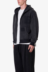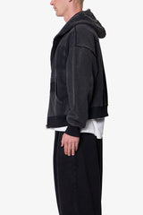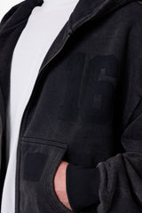 Constructed from heavyweight 450 gsm French terry with an enzyme wash, the Vintage Back Yoke Zip Up Hoodie features a cropped, boxy silhouette. Designed with a yoked back panel and paneled sleeves, this hoodie includes ghost patch jersey numbers on the chest and back, along with a ghost patch detail at the front pocket. Finished with a full-length zipper, ribbed hem and cuffs, and kangaroo pockets.