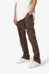 the Snap Zipper II Cargo Pants are designed with an updated relaxed fit throughout, improved, stiffer fabric, with cargo pockets at the side seam, 4 snap closures at the outseam with a zipper underneath the entire length, velcro closure at the leg opening and finished with a built in belt made of self material.