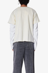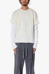 Our French Terry Double Layer Thermal L/S Tee features a vintage-washed french-terry cropped shirt layered over a cotton long-sleeve thermal. The thermal features an extended sleeve length, while the layered french terry tee features raw hems at the sleeve and waist.