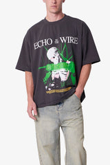 Constructed from 300 gsm cotton jersey with a pigment dye finish, the Echo Tee features a boxy silhouette with a slightly wider fit than a standard tee. Designed with front and back screen printed graphics, including distressed detailing for a worn vintage effect. Finished with a standard neck rib and sleeve hem.