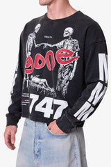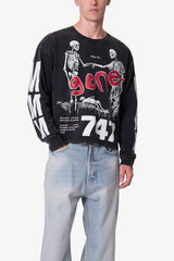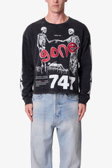 Constructed from 300 gsm cotton jersey with an acid wash finish, the Gone Skeleton Print L/S Tee features a relaxed, cropped fit. Designed with long sleeves and ribbed cuffs, it’s detailed with vintage-effect skeleton artwork screen printed across the front, back, and sleeves. The cracking and washed treatment on the graphics completes the distressed aesthetic.