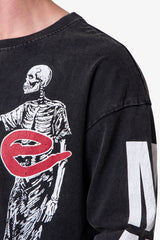 - Screen printed skeleton artwork on front, back, and sleeves