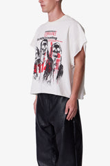 Constructed from 100% cotton with a vintage wash, this sleeveless tee features a cropped, boxy fit. Designed with raw cut arm holes and hem, it's detailed with cracked grim artwork screen printed on the front and back. Finished with a ribbed neck.