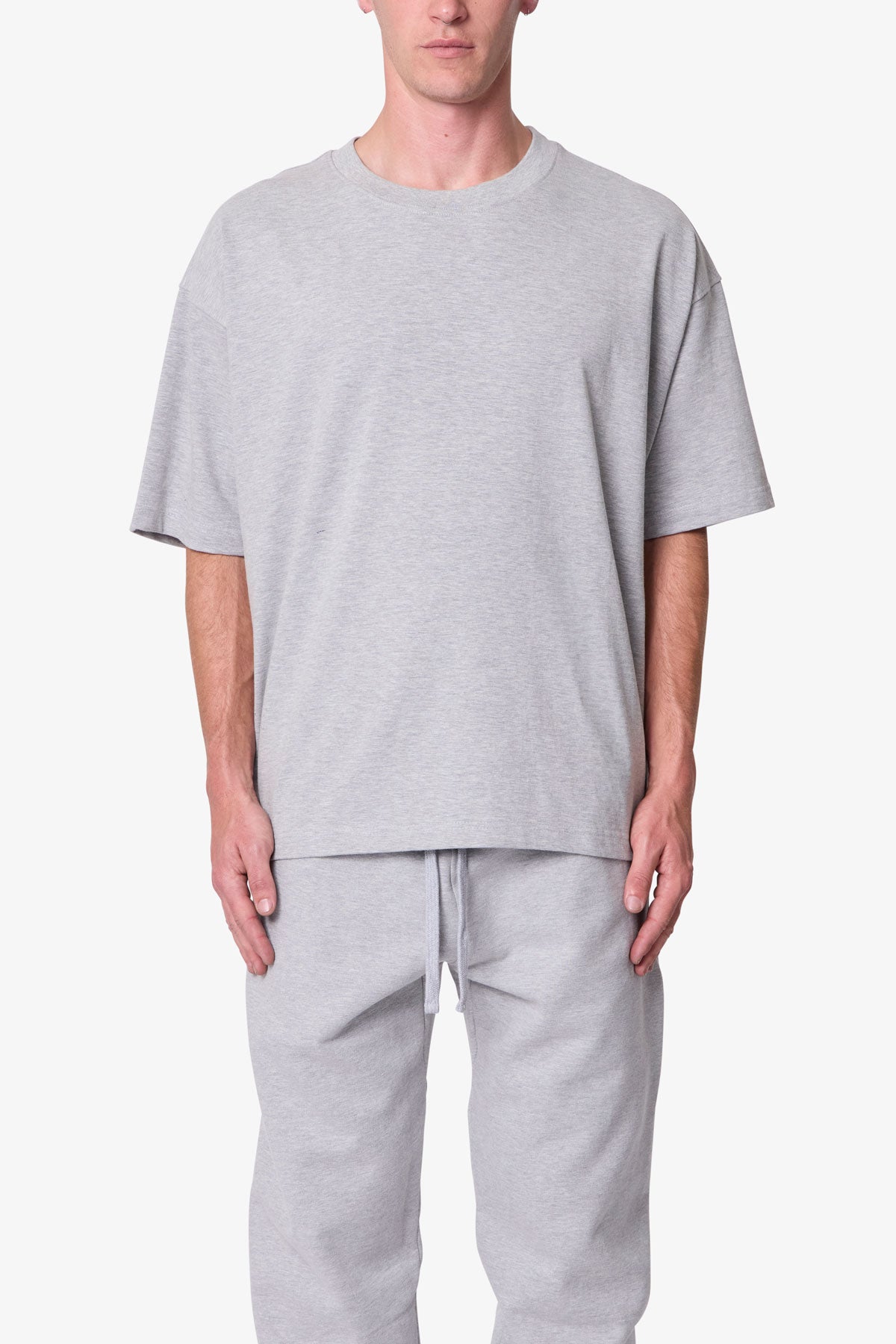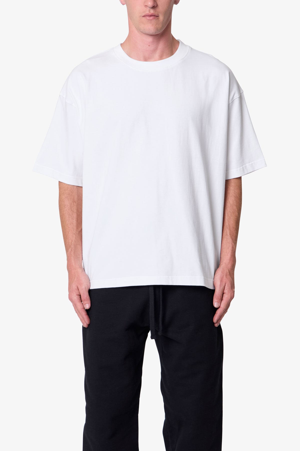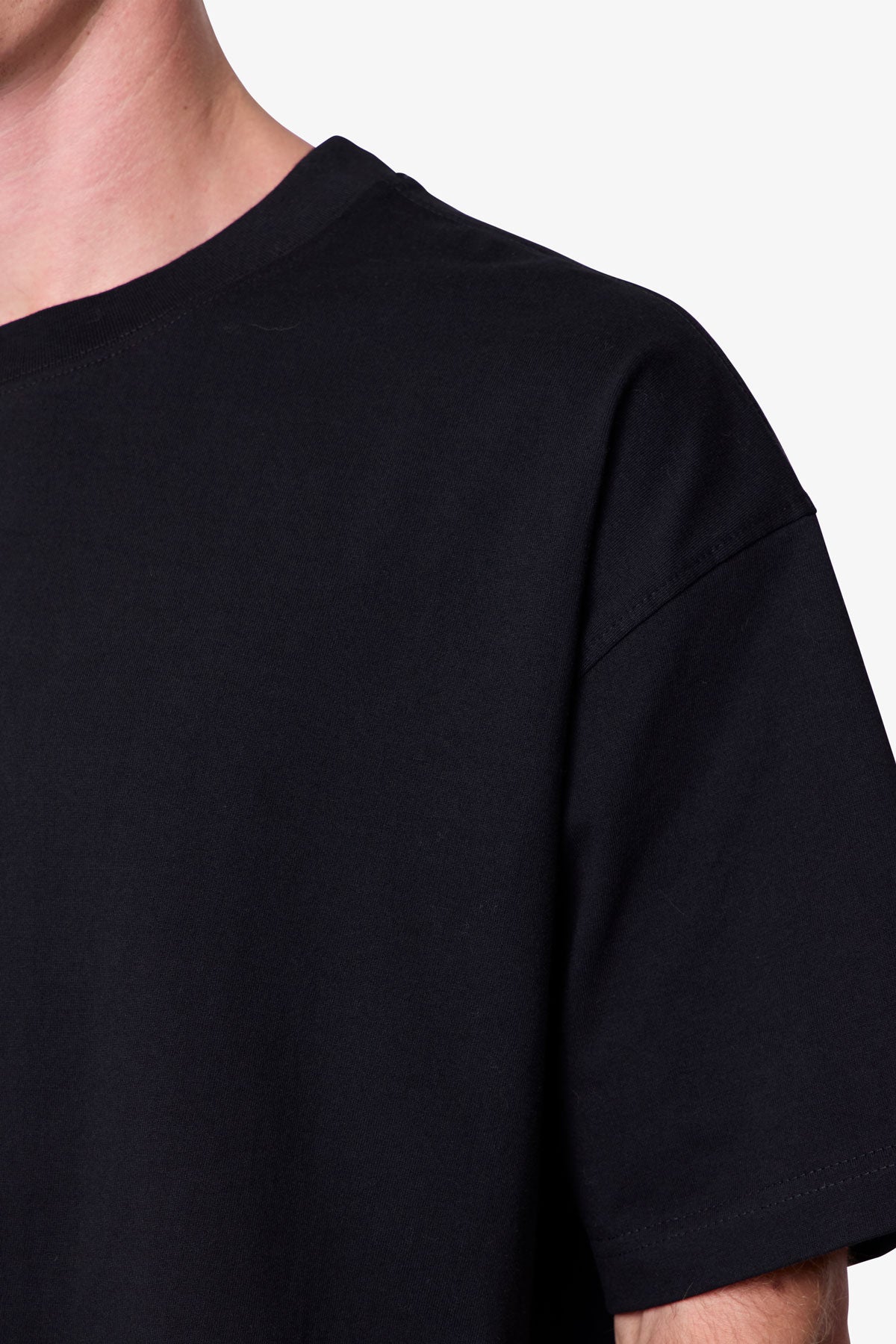 Constructed from heavyweight 300 gsm cotton jersey with a garment wash finish, the Heavy Basic Boxy Tee features a cropped, boxy silhouette with dropped shoulders. Finished with coverstitch detailing at the neck, sleeves, and hem.