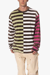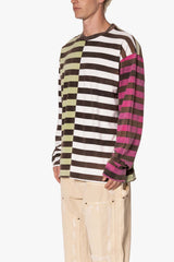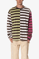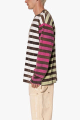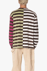 the Multi Striped L/S Shirt is made from 100% cotton and features tri-color striped pattern, extended sleeve length and finished contrast ribbing at the neck.