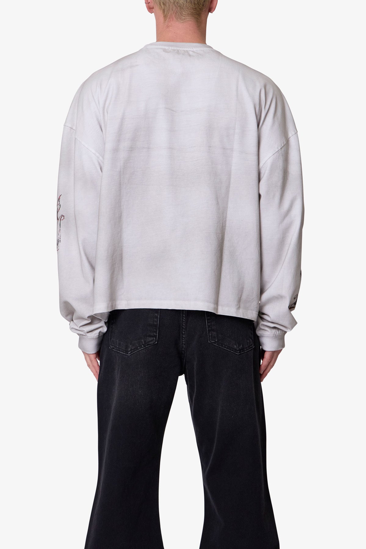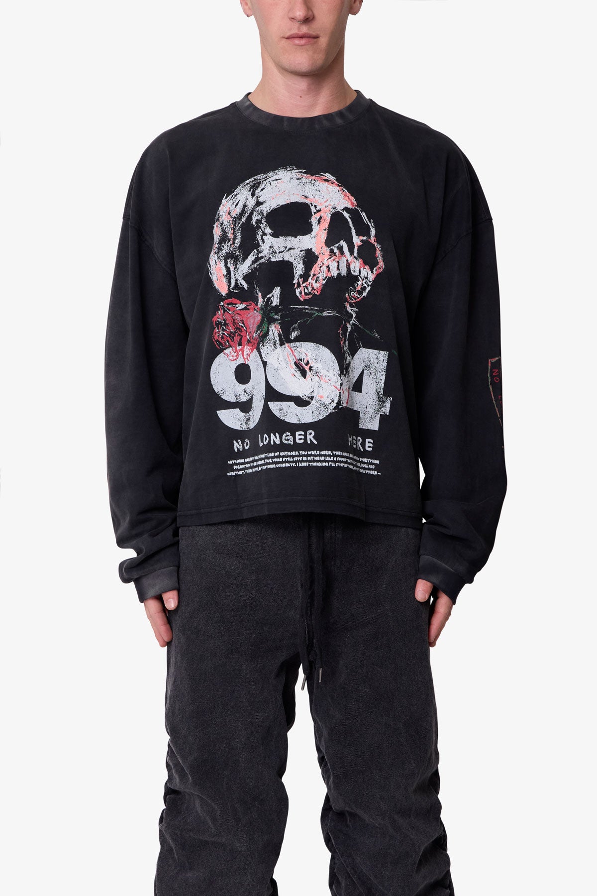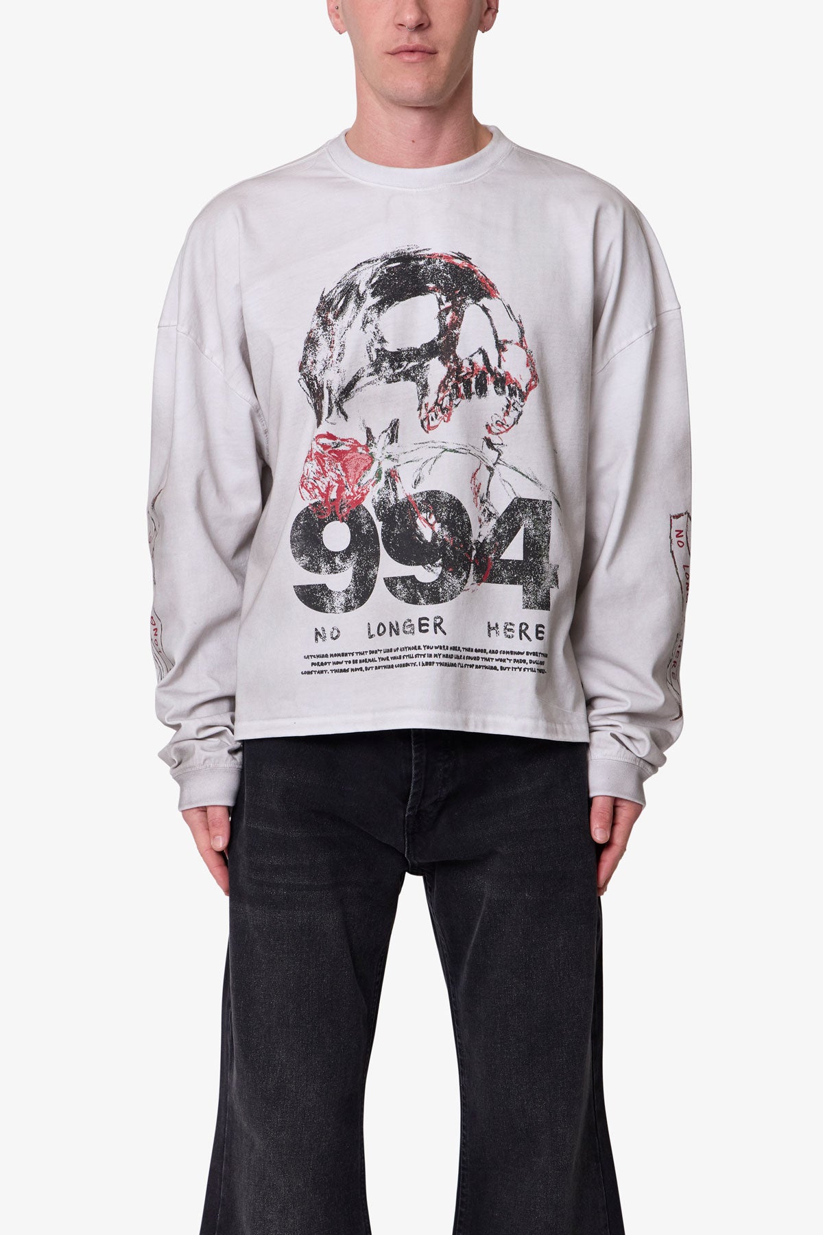 The No Longer Here L/S Tee is crafted from 100% cotton for a comfortable standard fit. It features a screen print design and is garment dyed with an enzyme wash for enhanced texture and depth.