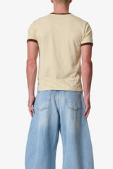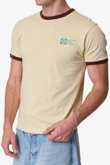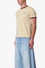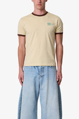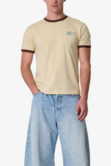 Made from vintage washed 100% cotton jersey, the Power Ringer Tee features a fitted silhouette with contrast ribbing at the neck and sleeves. Finished with a screen printed chest graphic and a standard hem.