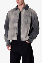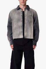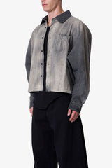 Constructed from 100% cotton denim, the Spray Denim L/S Shirt offers a cropped fit with a wide chest for a contemporary look. The shirt features a unique back yoke paneling and pleating design, creating a distinctive silhouette. It is heavily washed with a vintage finish, showcasing a worn and sun-faded effect, complete with a front chest pocket that includes scrunch detail.
