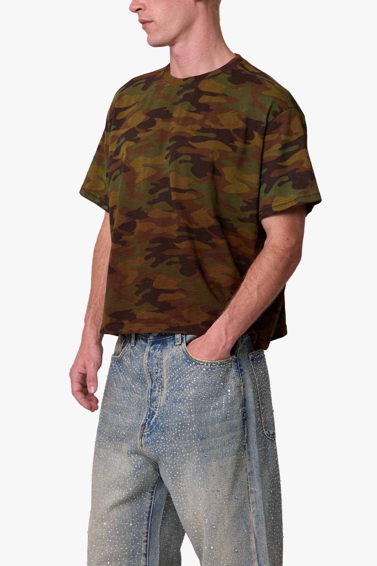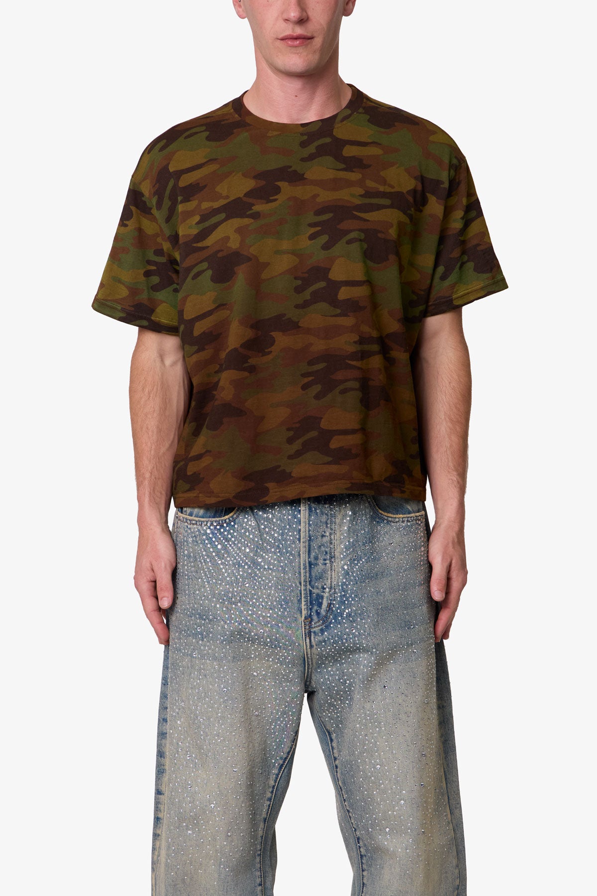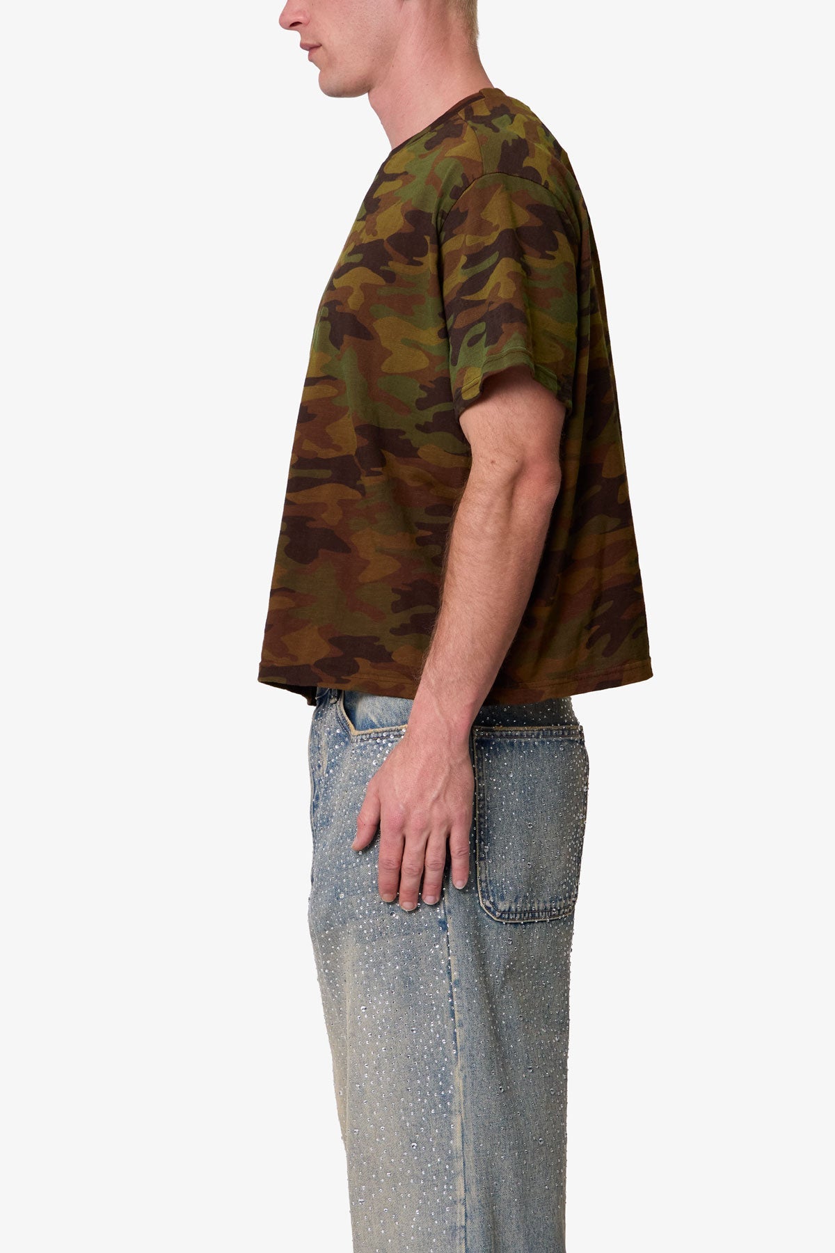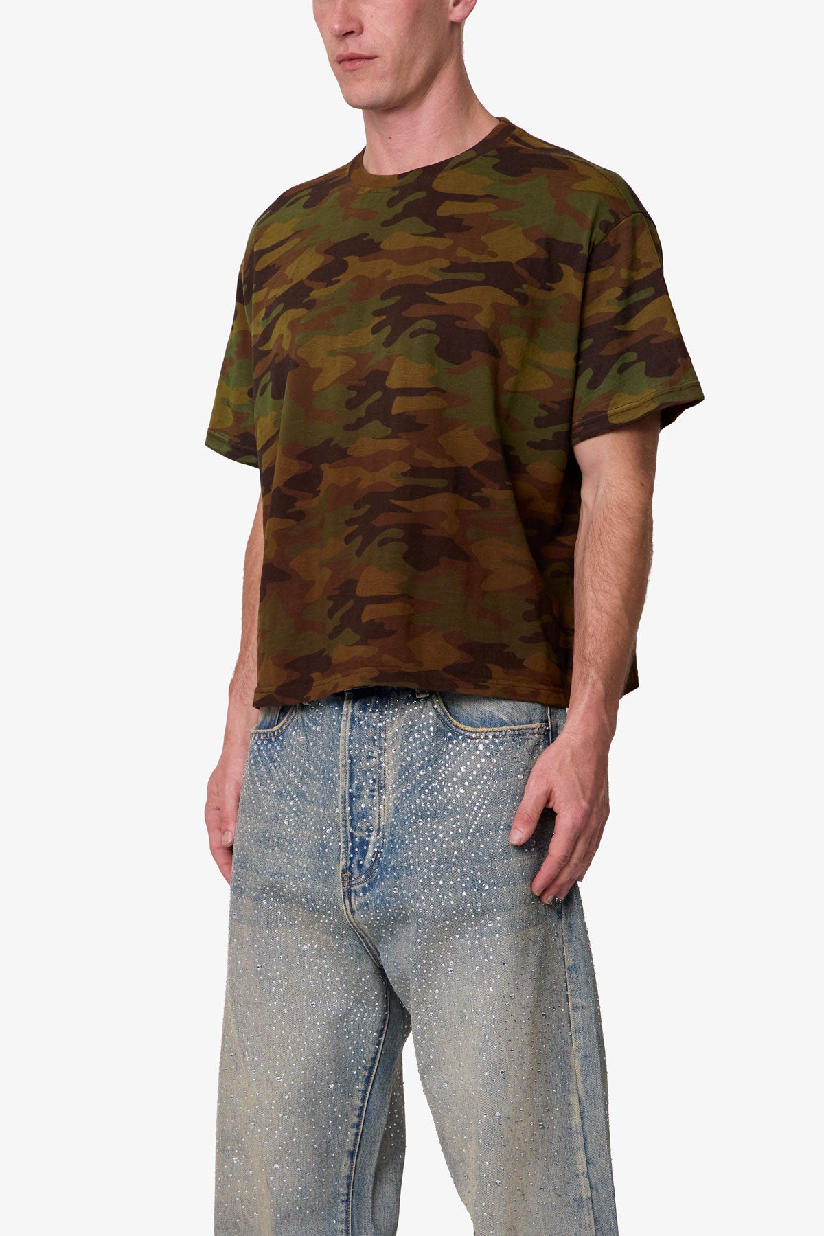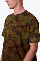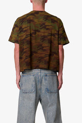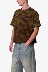 The Sprayed Slub Tee is built from lightweight cotton slub jersey with a naturally textured surface. The cropped relaxed silhouette keeps the fit easy while the woodland camo print adds visual depth.