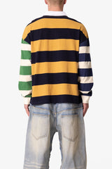 Constructed from 300 gsm cotton jersey, the Striped Rugby L/S Shirt features a relaxed fit and a traditional pull-over design. Washed for a lightly worn appearance and added softness, it includes contrast stripes and an embroidered chest patch with light distressing. Finished with a classic collar and placket, ribbed sleeve cuffs, and a straight hem.