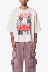 Constructed from 300 gsm cotton jersey with a vintage wash, the Supplier Printed Tee features a boxy silhouette with a slightly wider fit than a standard tee. Designed with screen printed graphics on the front and back. The prints are distressed for a worn-in appearance and combined with the garment wash to enhance the vintage look and hand feel. Finished with a standard rib neck and hemmed sleeves.
