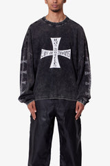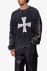 - Cracked and distressed chest and sleeve graphics