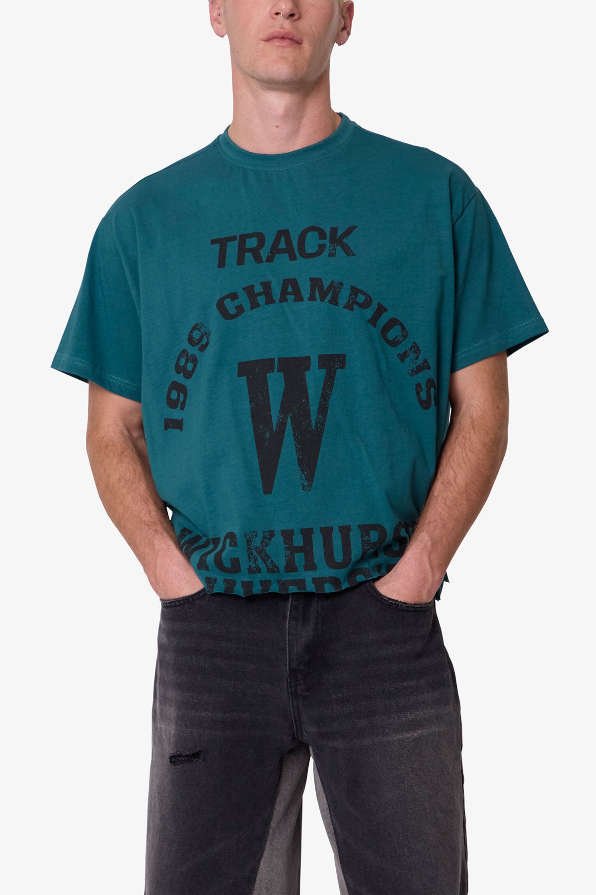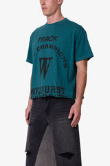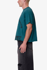 The Wickhurst Cut Off Tee delivers a relaxed, cropped silhouette with a worn, vintage-driven finish. Constructed from 100% cotton jersey, it has a soft, breathable feel, enhanced by a heavy vintage wash. The design features distressed screen printed graphics at the front and back, finished with a raw cut-off hem.